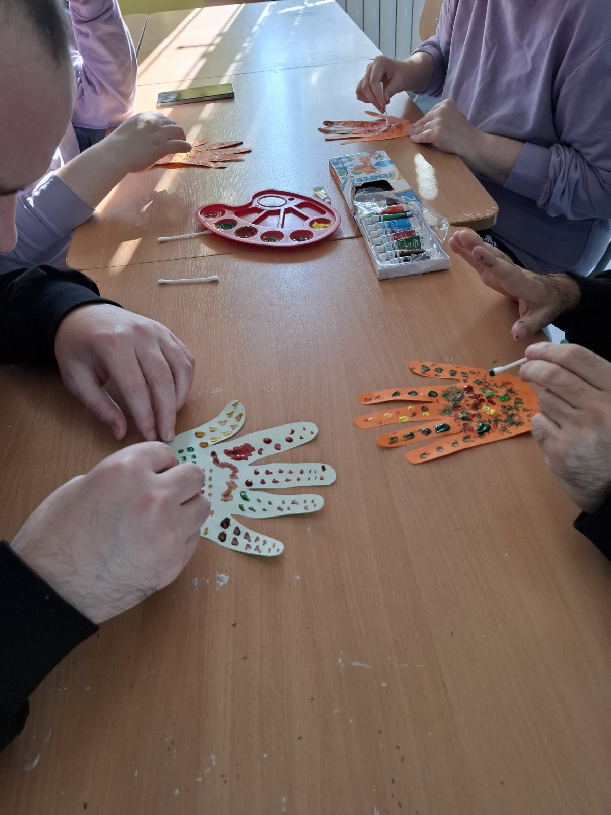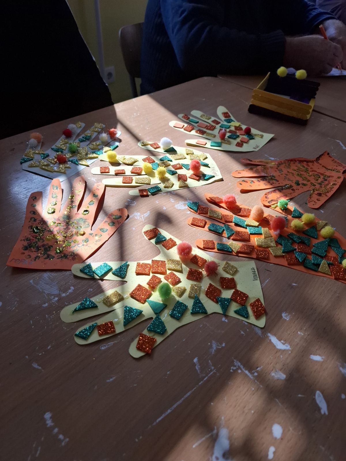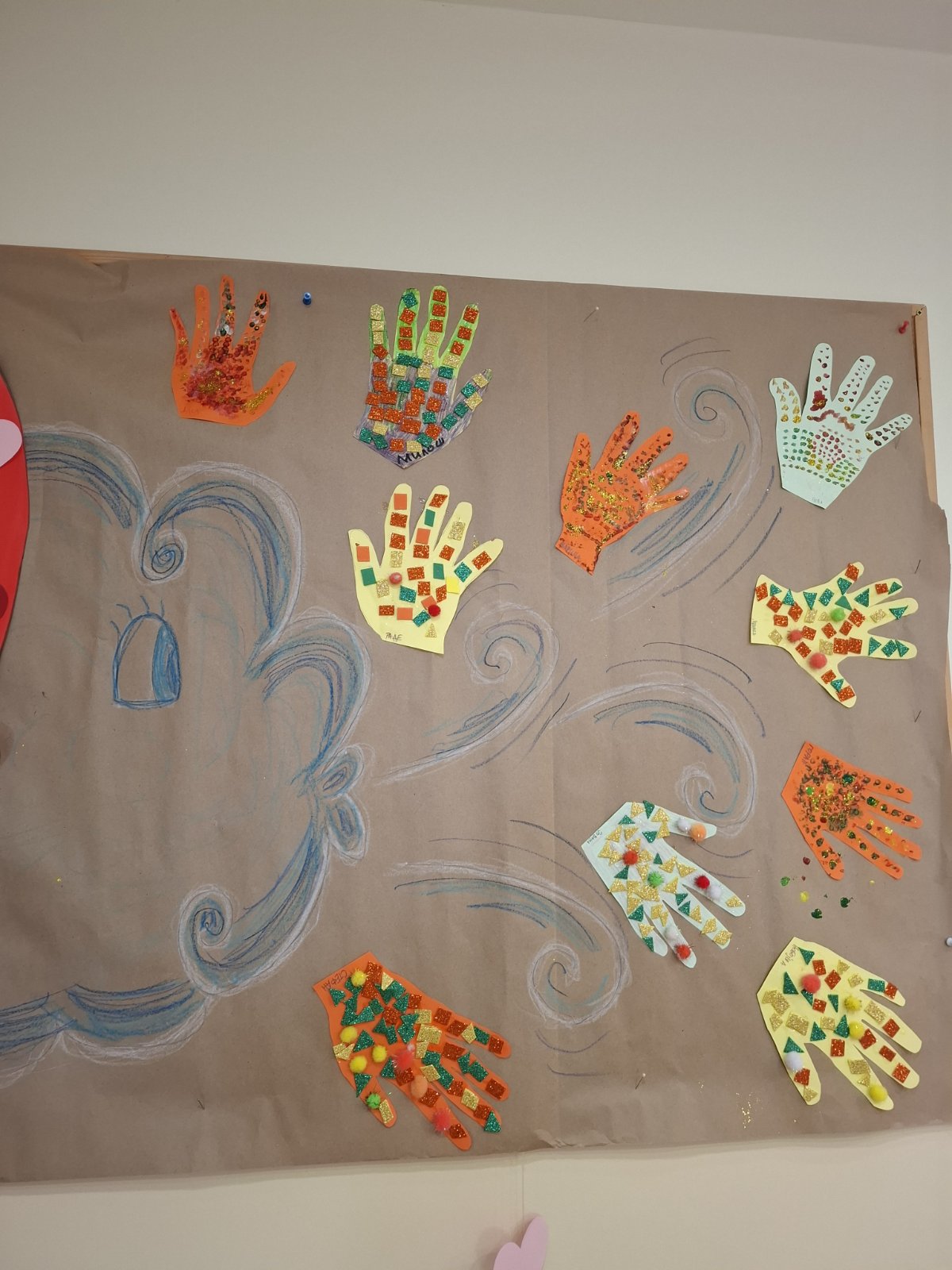Ова тематска радионица имала је за циљ подстицање фине моторике, развој креативног израза, као и јачање социјалних вештина кроз заједнички рад. У пријатној атмосфери и уз пуно осмеха, корисници су имали прилику да израђују и декоришу облике руку од папира, користећи различите материјале попут шарених папирића, пом-пом куглица и шљокица. Руке су потом симболично „пуштене ветру“, као део заједничког паноа који сада краси зид Установе.