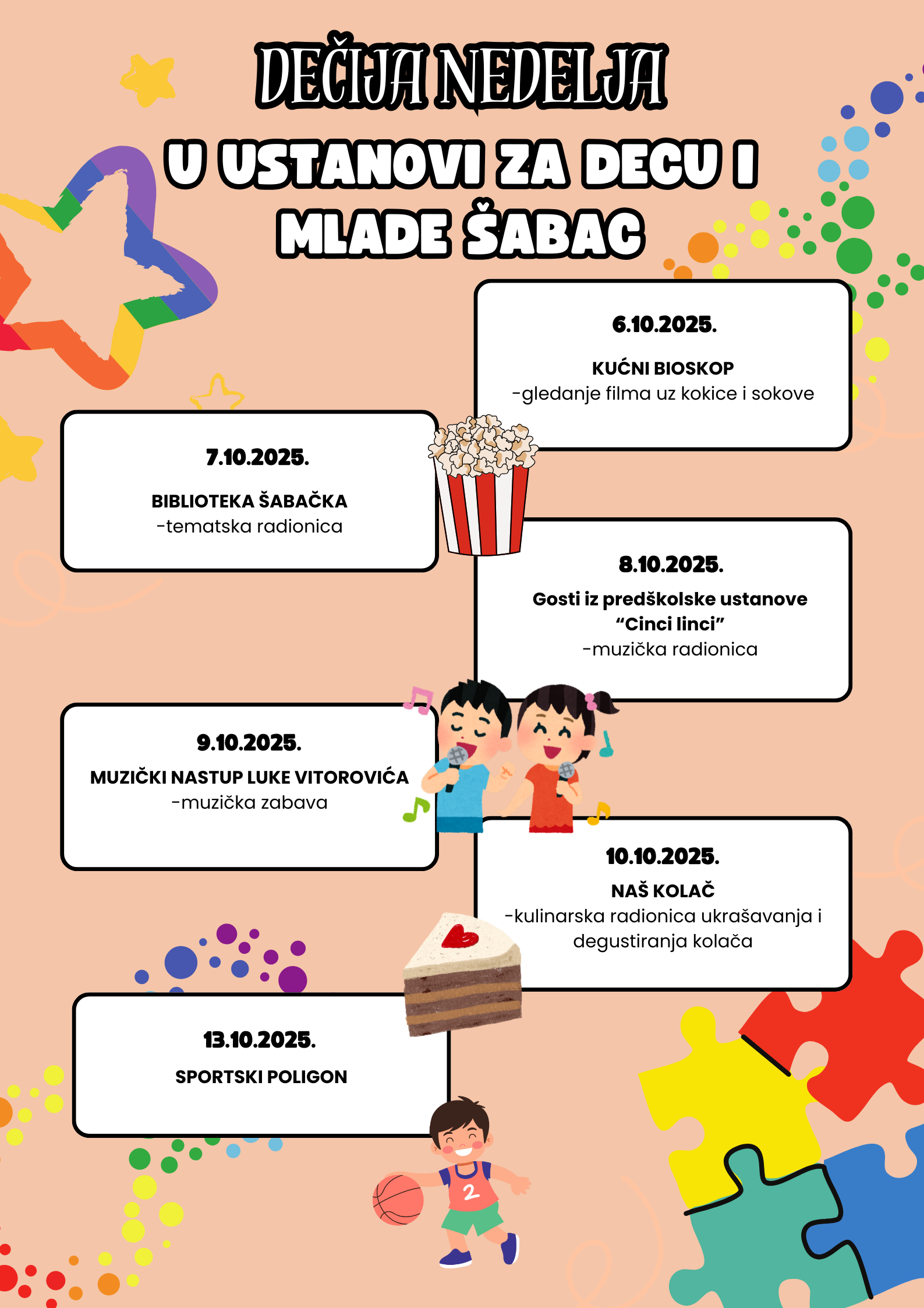 Установа за децу и младе „Шабац“ при Центру за социјални рад Шабац са поносом обележава Дечију недељу, која се ове године одржава под инспиративним слоганом: „Имам право да се играм, да се смејем, маштам, стварам – и у бољи свет претварам.“ Ова недеља посвећена је промовисању права и потреба деце, као и пружању подршке њиховом развоју и интеграцији у друштво.